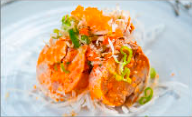 (In: Salmon, Avocado, Crab Meat, Cream Cheese / Out: Deep Fried)