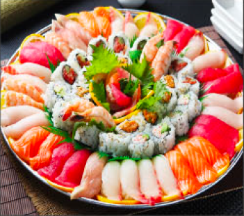 25 pcs Sushi, 25 pcs Sashimi , 8 Crunch Roll,