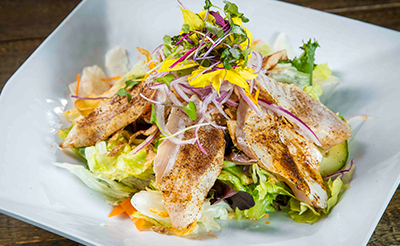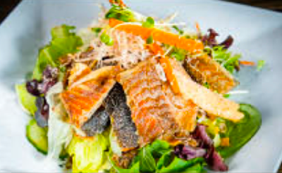 out: Seared Salmon, Pico Degallo)