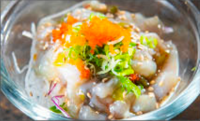 (In: Crab Meat, Avocado / Out: Fried Scallop on Top with Sauce)
